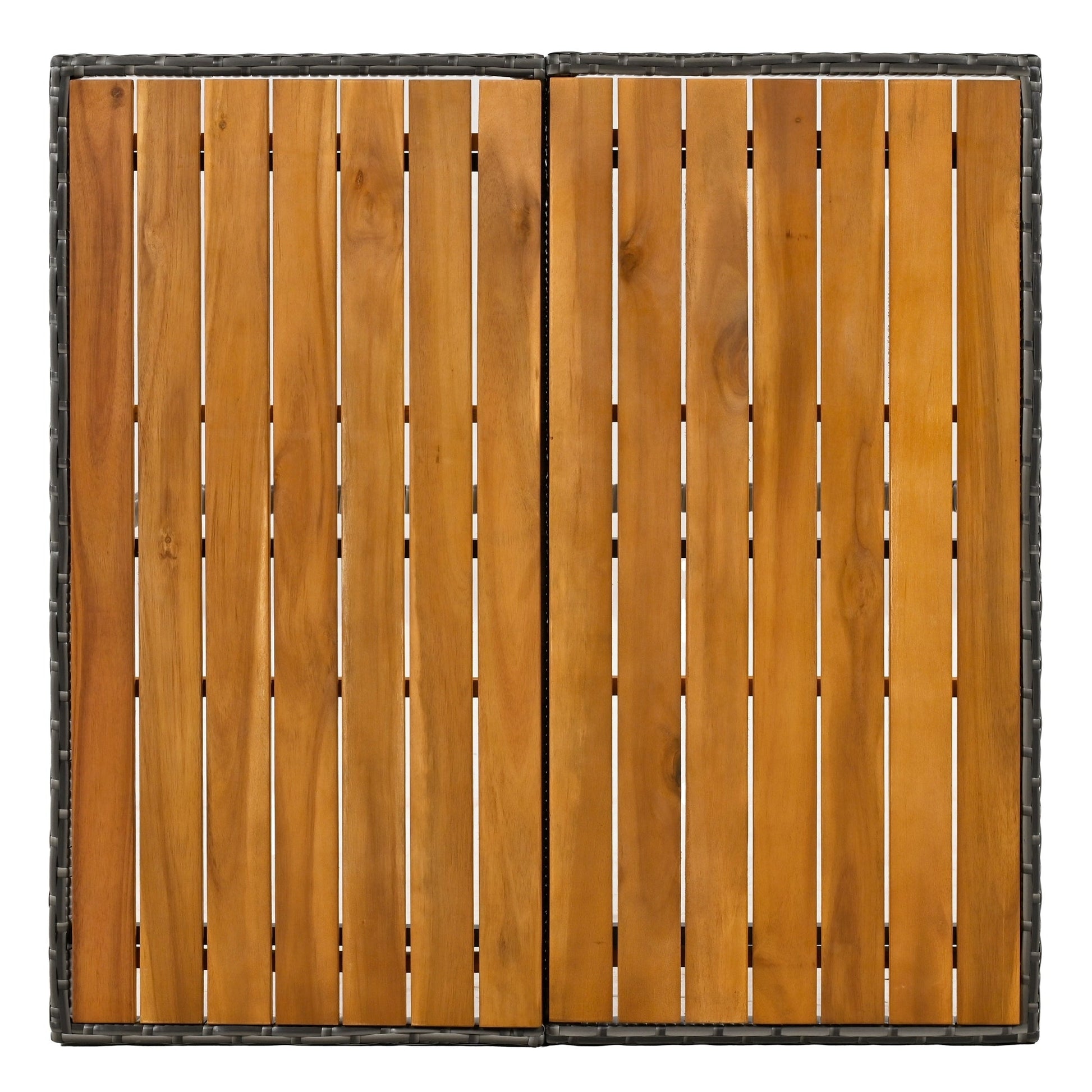 - Solid wood (acacia) tabletop that enhances outdoor aesthetics