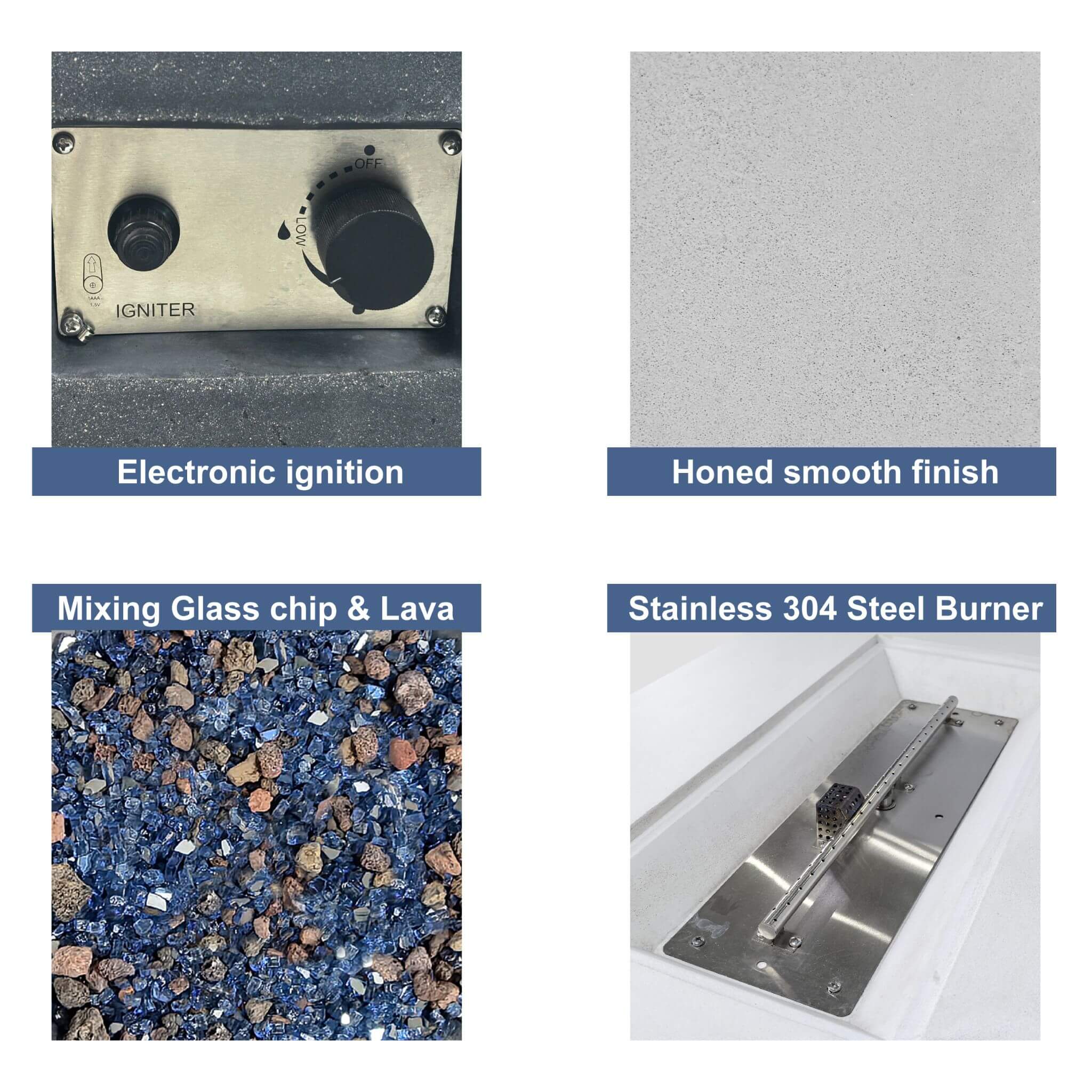 - Comes with a glass wind guard, lava rocks, mixing glass chips, adjustable feet, waterproof canvas cover, concrete repair kit, and an owner’s manual for ultimate convenience.