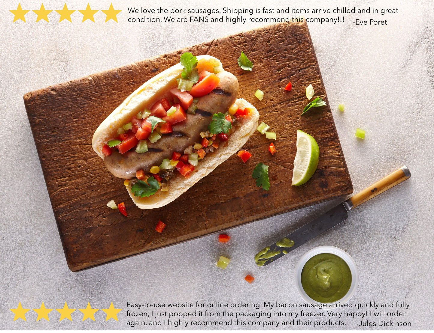 Shipping Details: Sausages ship frozen, using a combination of dry ice and ice packs in shipping coolers to ensure safe temperature throughout it’s journey to you. We typically ship out Tuesdays unless the shipment will arrive in 1 day then we will ship out Wednesday or even Thursday. We ship out of Chicago.