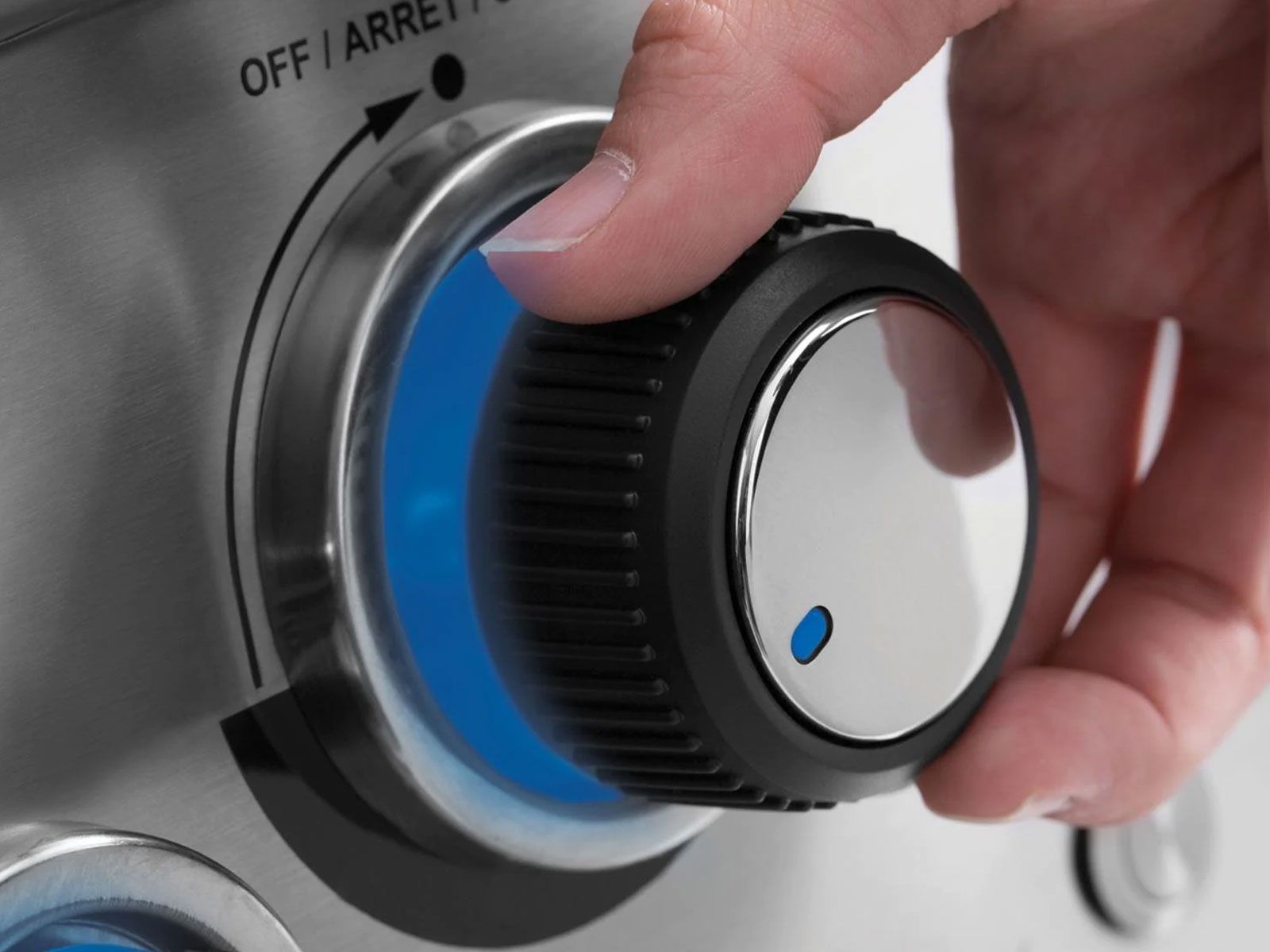 Command exceptional cooking control with the legendary Flav-R-Wave cooking system that transforms drippings into aromatic smoke, infusing authentic barbecue character into every meal. The 15,000 BTU rear rotisserie burner and 10,000 BTU side burner add 25,000 additional BTUs for 80,000 BTUs of total cooking output. Blue LED-illuminated control knobs with stainless steel ignition switches offer precision temperature management, while interior and exterior oven lights illuminate your 875 square inches of total cooking space for effortless evening entertaining. The 250 square inch stainless steel warming rack provides additional food-holding capacity.