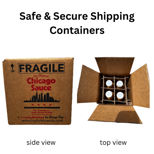 SHIPPING: Chicago Fry Dipping Sauce ships in a custom box that will protect the quality glass bottles from breaking without using any plastic.