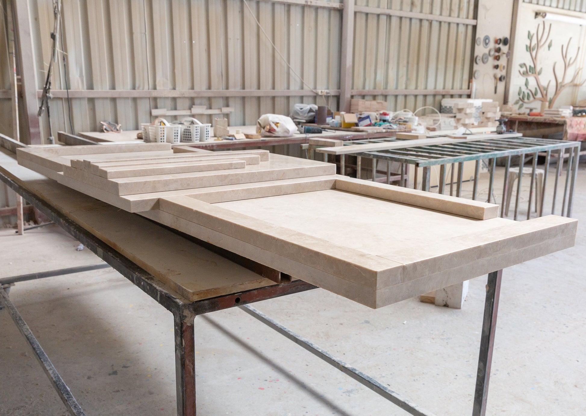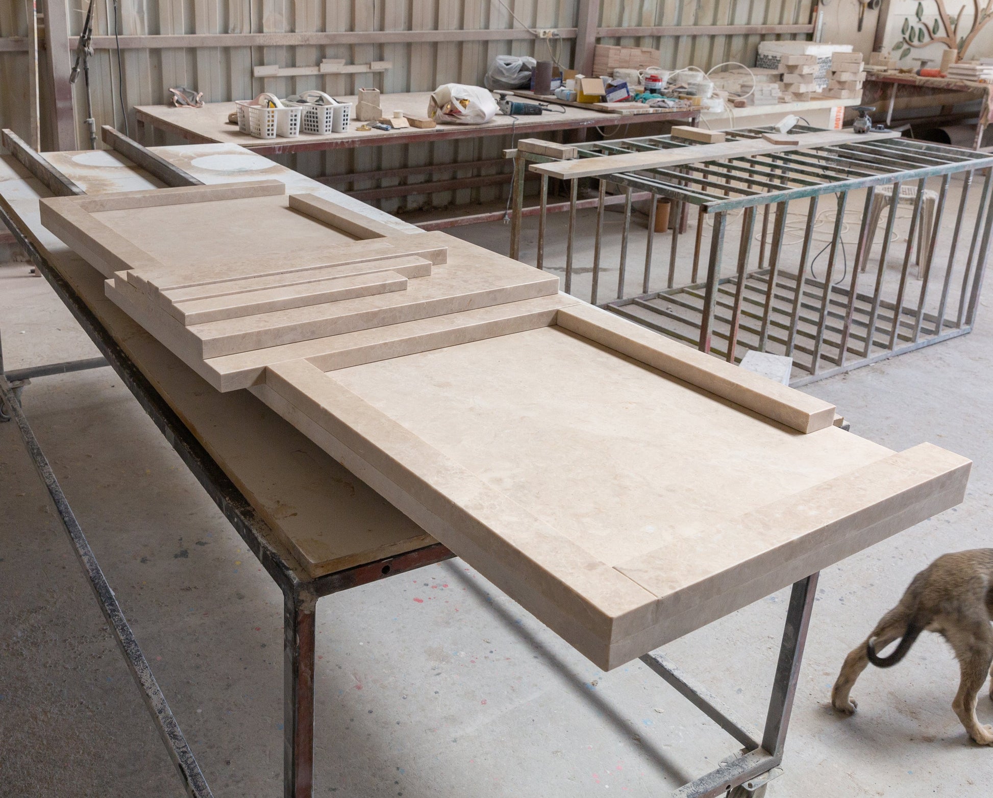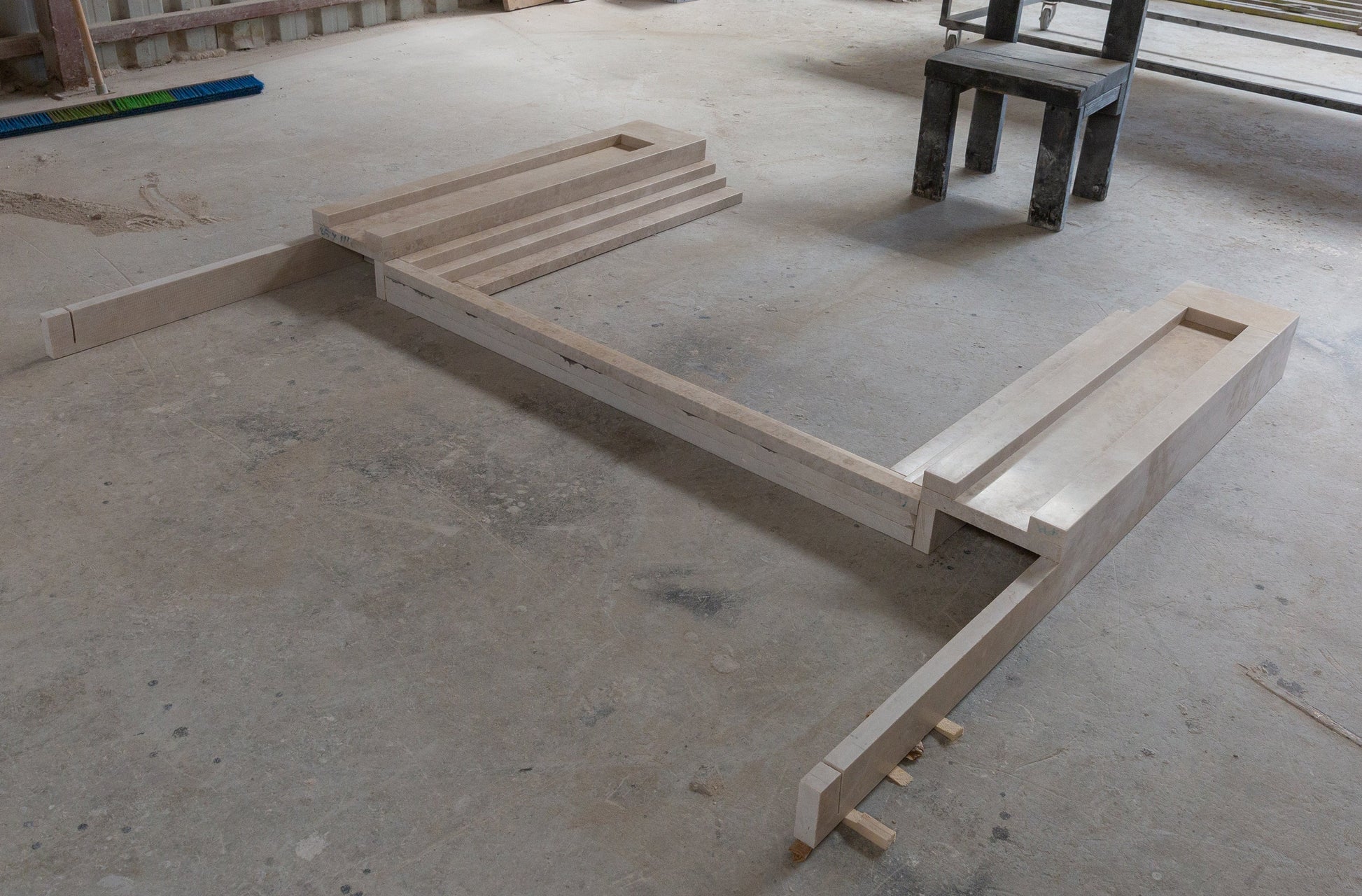 Hand carved natural marble construction.