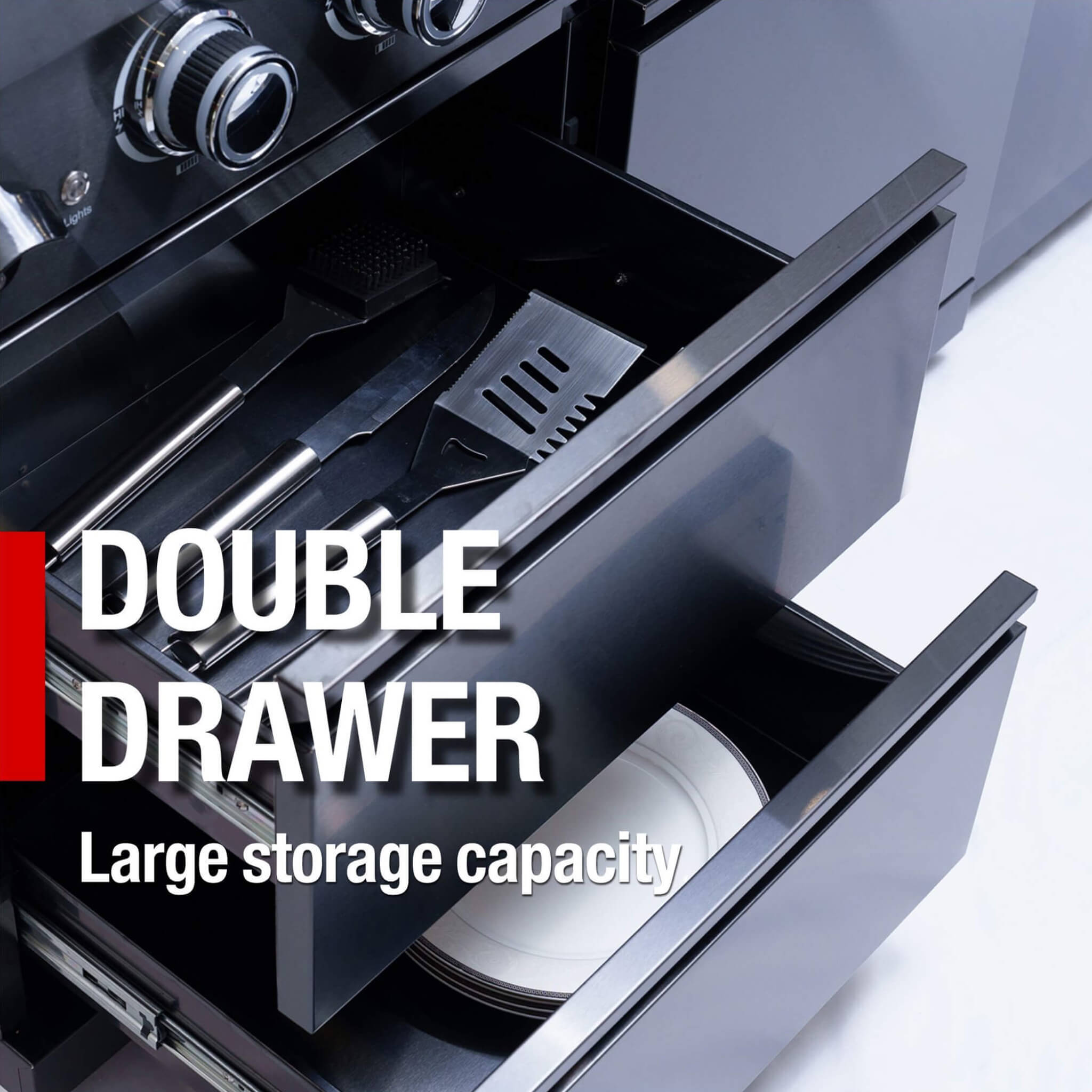 Designed for the modern host, its sleek 304 marine-grade stainless steel construction and black granite countertops offer a stylish, contemporary look. Arriving almost fully assembled, it lets you dive right into creating memorable culinary experiences with minimal setup.