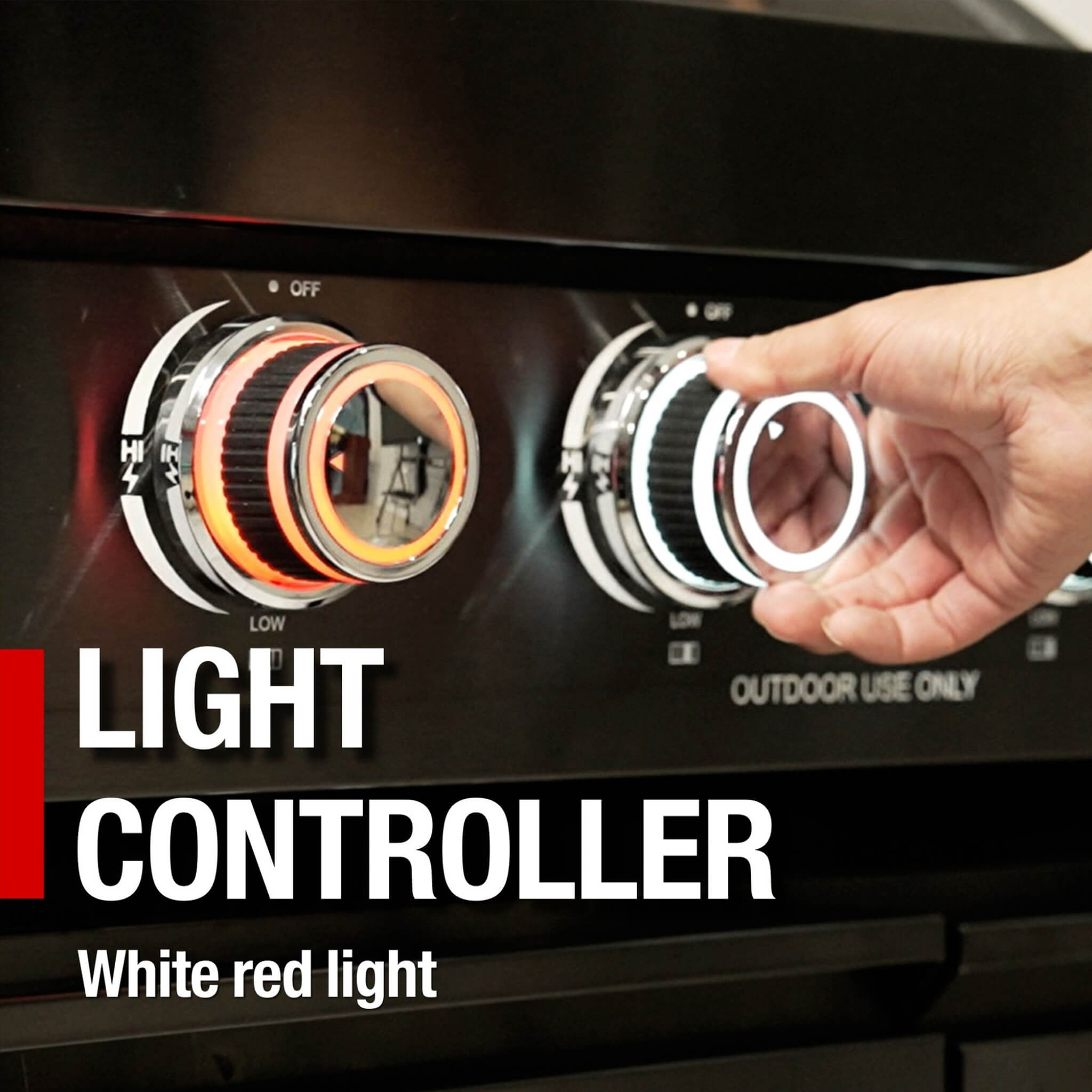 - Make a statement with stunning black galaxy granite countertops and a sleek black stainless steel finish. The grill features ambient red/white changing control knob lights, two internal halogen cooking lights for nighttime grilling, a convenient bottle opener, and easy-access storage drawers and cabinets for all your tools.
