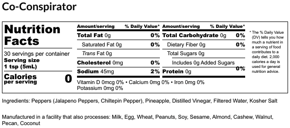 Those shady characters on the front are Chil, T and Pin. They know a good hot sauce and a good conspiracy when they see one. Pineapple and fire roasted jalapeno with chiltepin makes for a hot, sweet and thick sauce that will be the driver of your next culinary conspiracy, be it with chicken, seafood or even (SHHHHHH) fruit salad.
