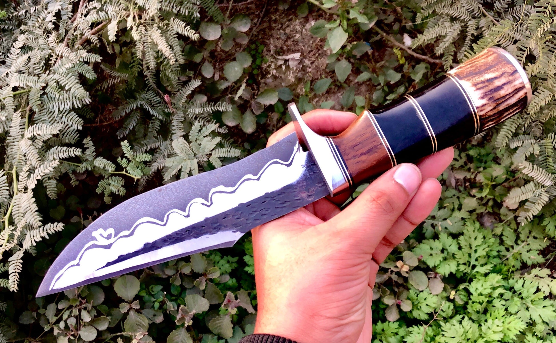 Handle Made Of Buffalo Horn , Rose Wood , Antler Horn and Steel Guard with Brass Spacers