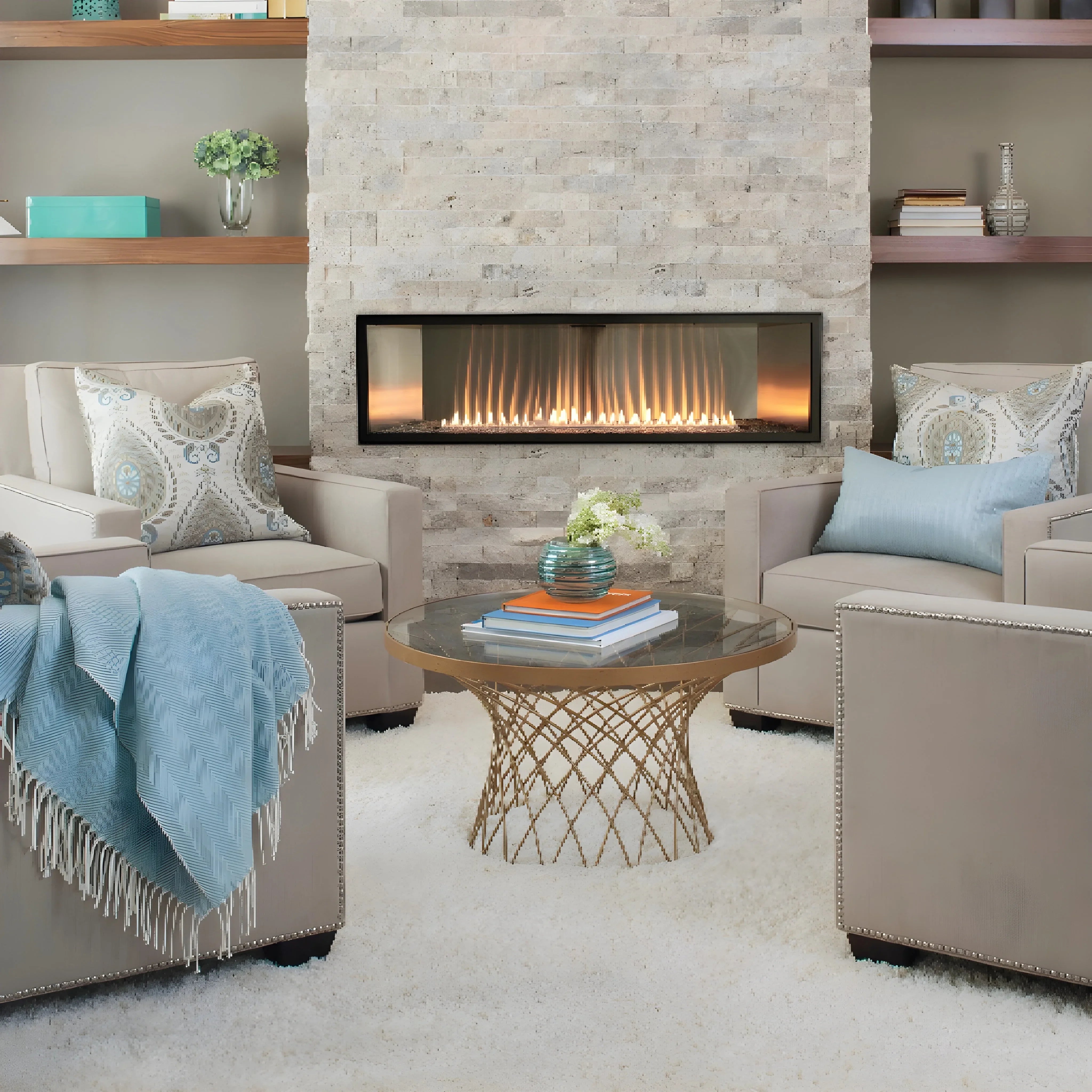 Elevate your home with the sleek design and versatile functionality of the Empire Boulevard 48" Vent-Free Linear Fireplace. Its bold horizontal lines, chic accessories, and contemporary burner make it a stunning focal point for any décor. Designed for in-wall, eye-level installation, this fireplace offers unparalleled design flexibility with options for decorative glass media, accent pebbles, or a stylish Driftwood log set.