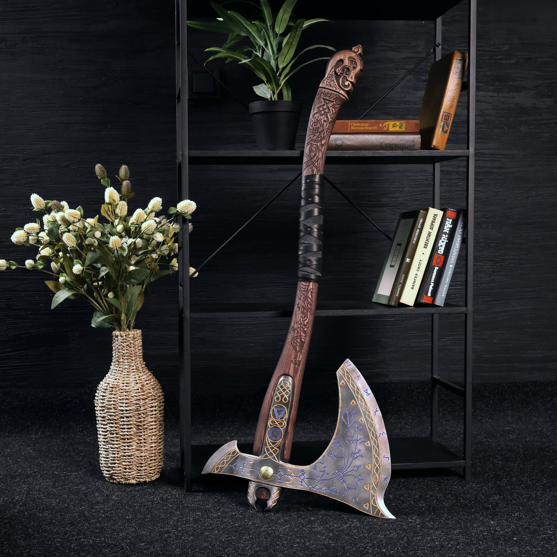 - Unleash Kratos' Power: dive into mythology with the "Tyr" axe, inspired by Kratos' legendary Leviathan Axe from the GoW game. A masterpiece befitting a demigod, designed for the passionate and the fierce.