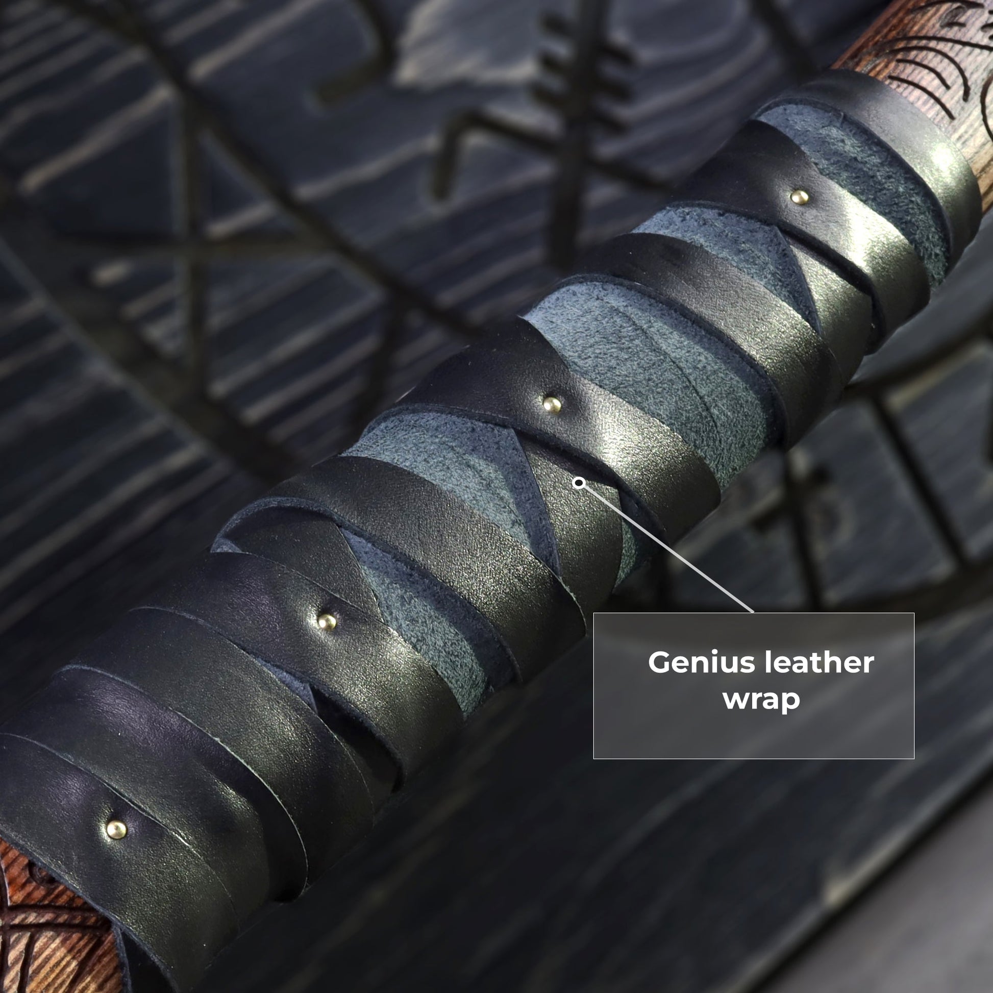 Hand-forged "Ragnarok Kratos axe" with carved handle