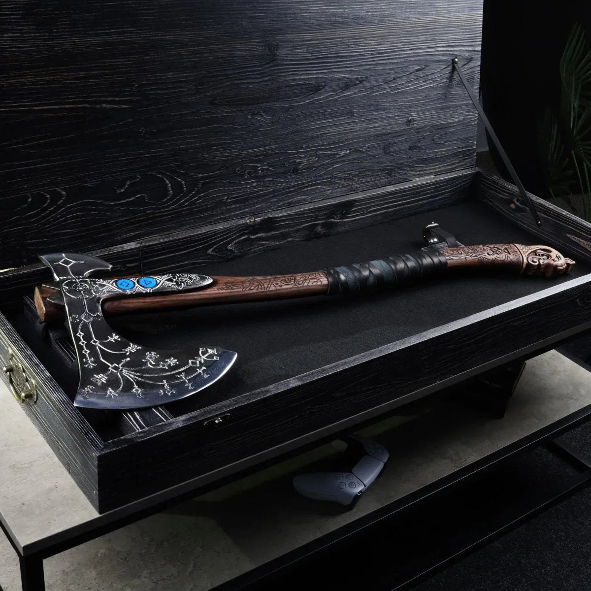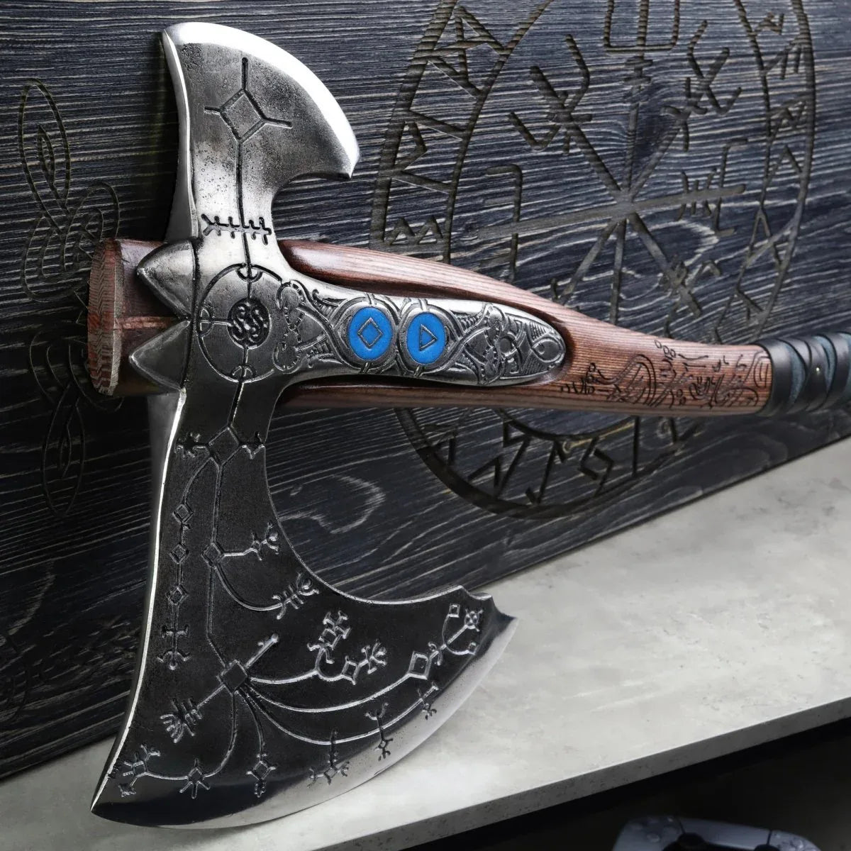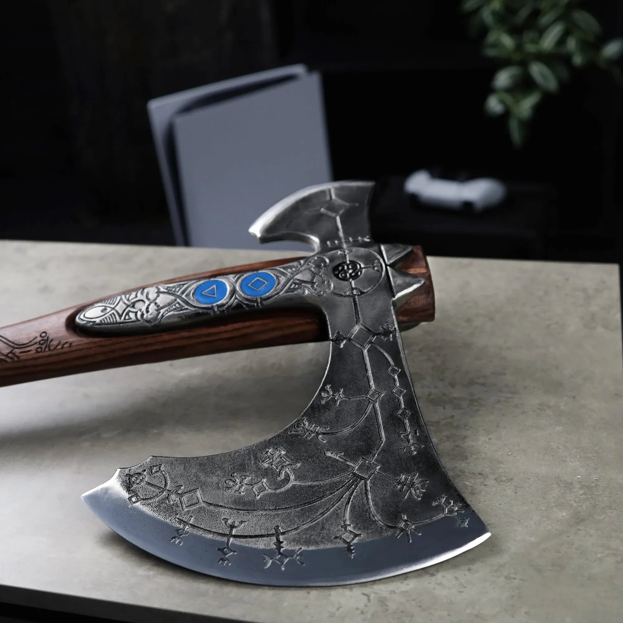 Hand-forged "Ragnarok Kratos axe" with carved handle Bring the power of the game into your hands with this hand-forged Kratos...