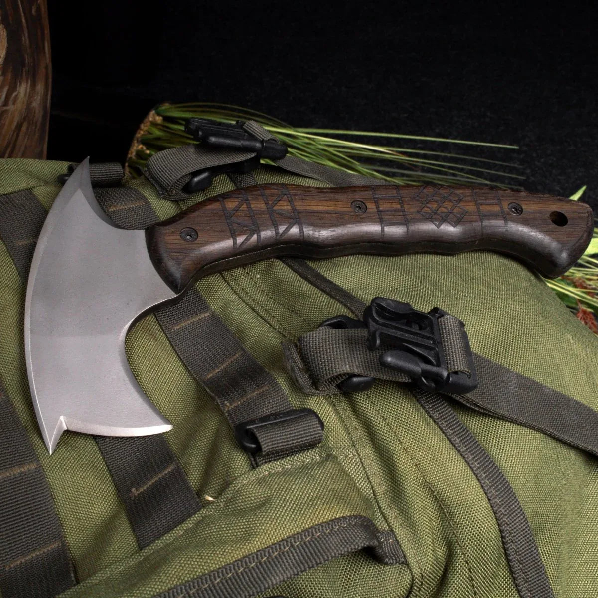 Functional Tomahawk with Tribal Engraving: Embrace the power of tradition with the "Dakuri" tomahawk, a finely crafted tool featuring detailed tribal engravings. Combining functional utility with artistic heritage, "Dakuri" is designed for those who appreciate both craftsmanship and performance.