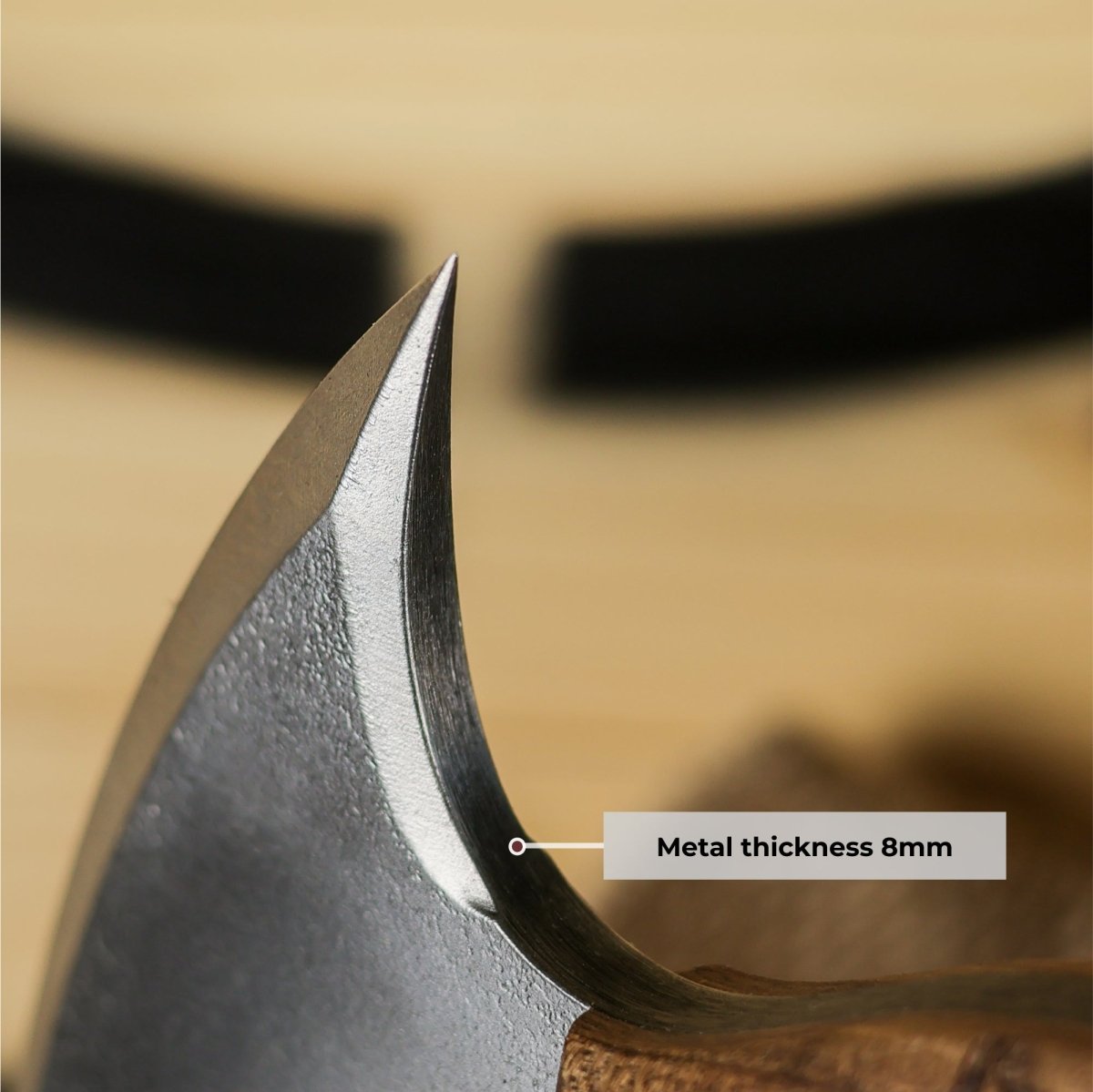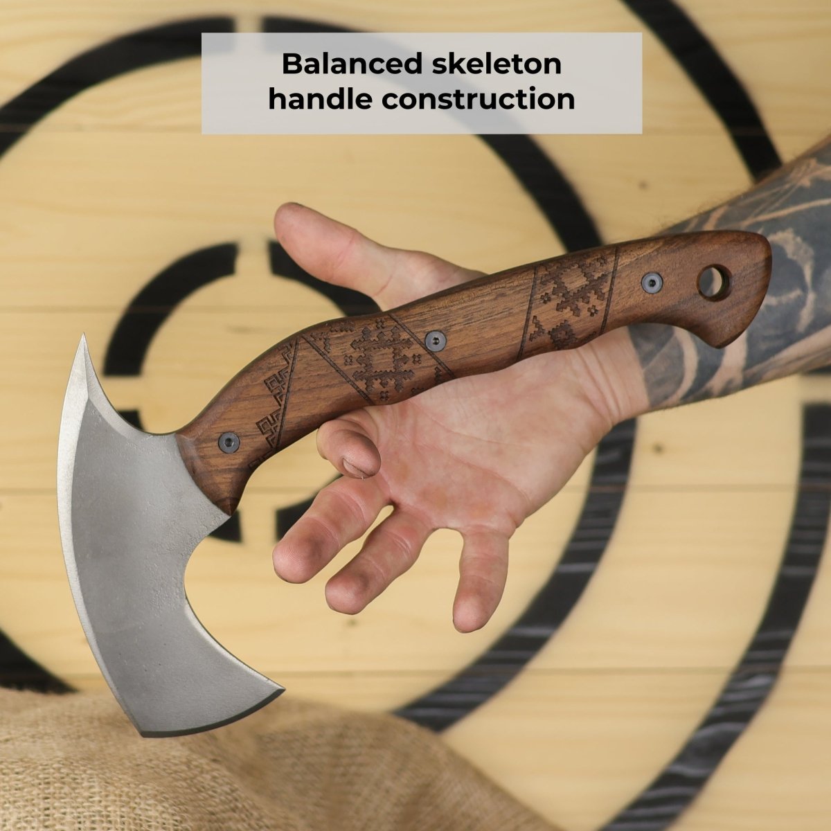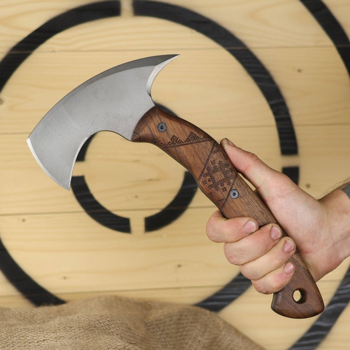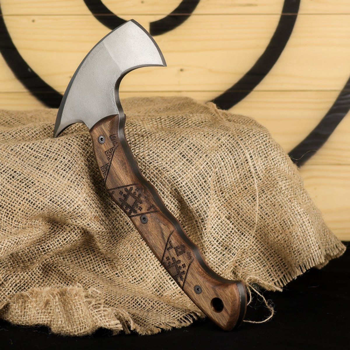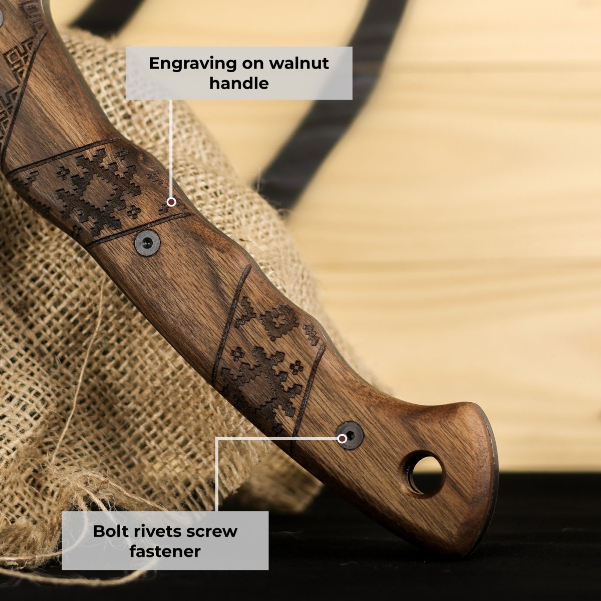 - Superior Craftsmanship: The handle of "Simargl" is carved from durable walnut, known for its strength and comfort. Its high-carbon steel head is expertly forged, ensuring long-lasting sharpness and precision. Every axe is meticulously handcrafted to handle the toughest challenges in any environment.