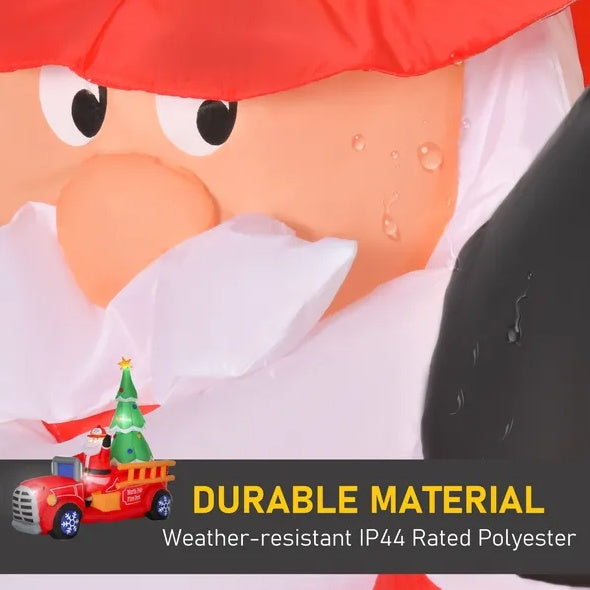 HOMCOM 7.5ft Christmas Inflatable Santa Claus Driving A Fire Truck With Tree, Outdoor Blow-Up Yard Decoration With LED Lights Display