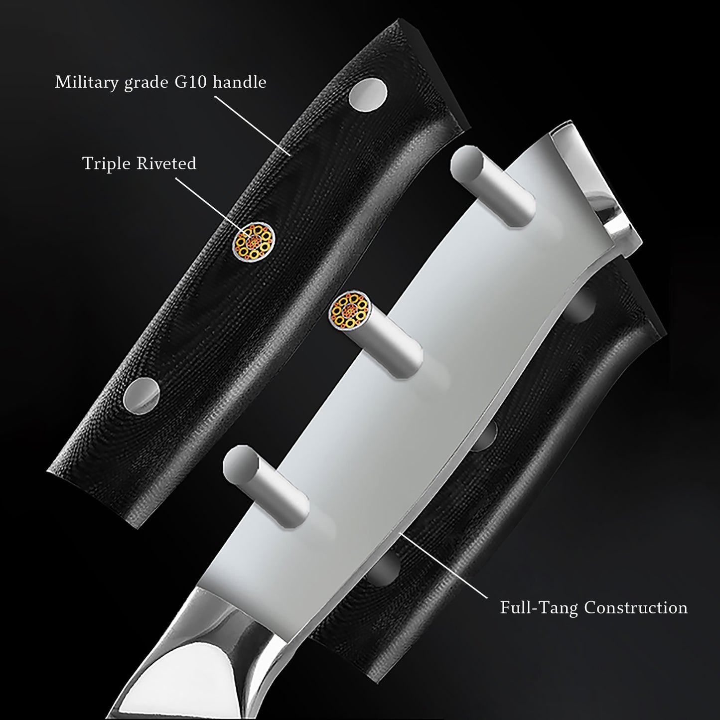 - Take Good Care of It: Take good care of a Damascus knife and it will serve you for a long time. Please hand wash it with warm water after every use and dry completely with a soft towel, then store it with a magnetic knife strip or a knife sheath, apply food-grade mineral oil to the blade periodically is best.
