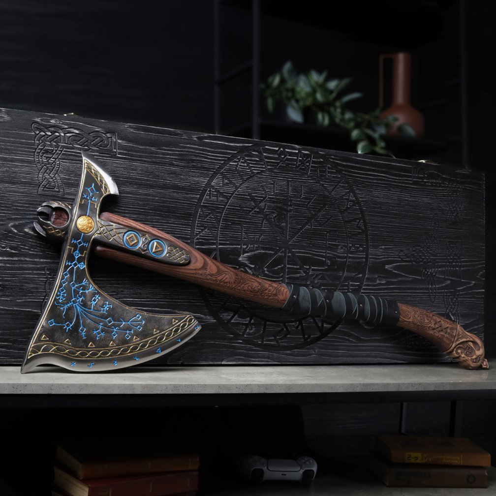 Leviathan Kratos axe with carved handle 34.25" Introducing the Leviathan Axe, a tribute to the legendary Kratos Axe from GoW....