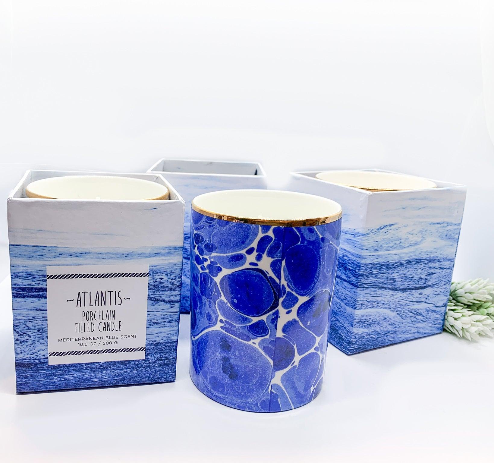 Mediterranean Blue Candles - Luxury Soy Wax in Porcelain Gift Box