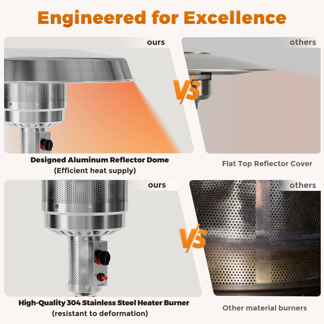 Powerful Heating & Instant Warmth: Delivers 50,000 BTU of heat, with instant warmth in just 30 seconds to 1 minute and a 20ft thermal range. Stands out from ordinary heaters by heating up outdoor spaces swiftly and extensively.