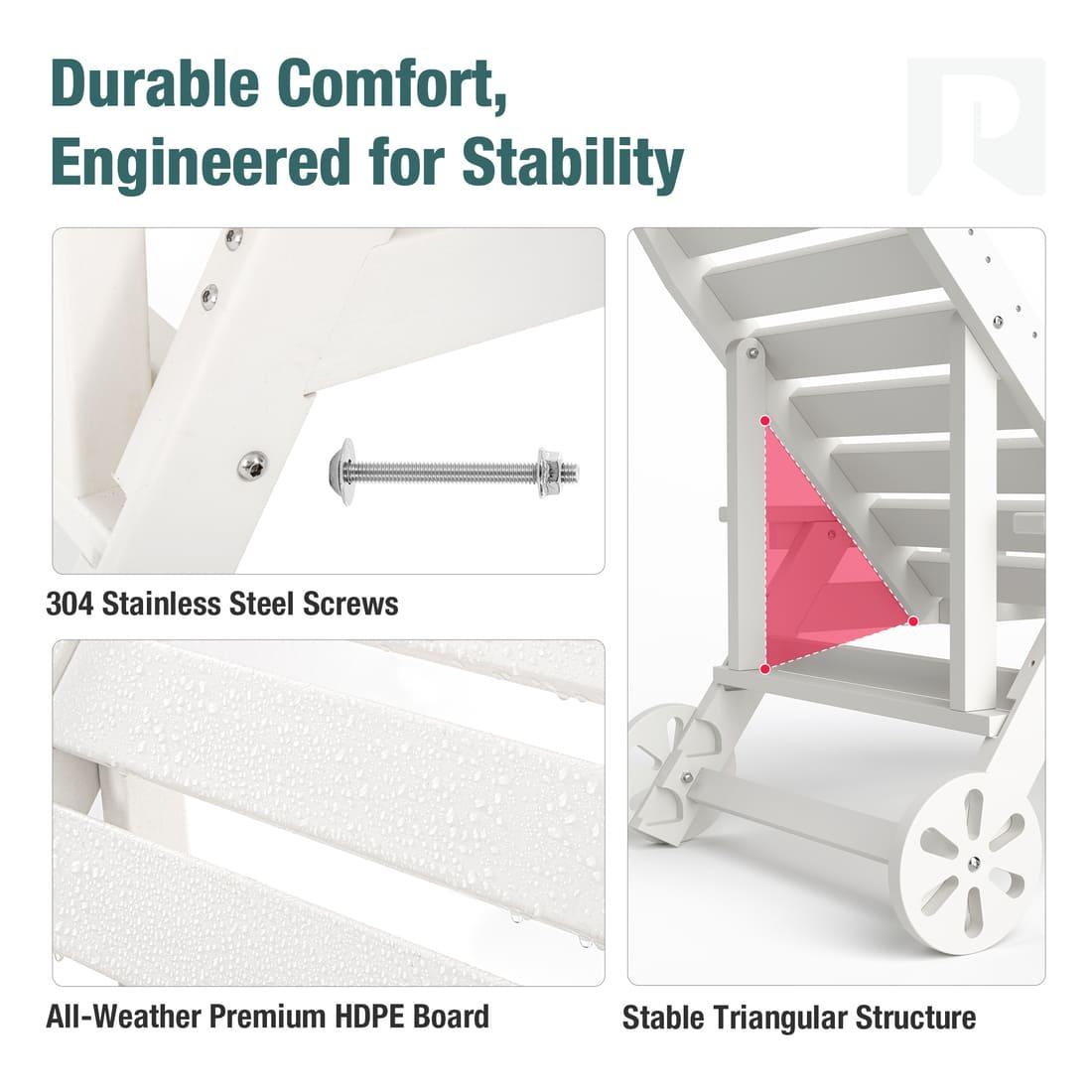 - Weather-Resistant: HDPE construction with stainless steel hardware resists moisture and corrosion