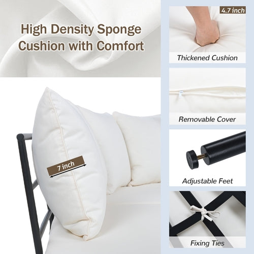 Constructed from premium materials, this set features a robust iron frame paired with high-grade polyester cushions that promise longevity and comfort. The thickened iron pipes reinforce stability and support, while the water-resistant cushions maintain their plush feel and appearance through changing seasons and weather conditions.
