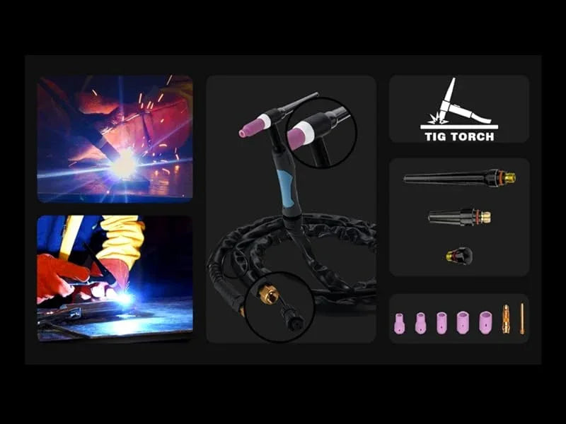 Accessories Complete: MIG Torch*1, 0.030" & 0.035" tips *1, Contact Tip For Aluminum Welding*1, Red Copper Nozzle*1, U / K-groove Wire Feeding Wheel*1, Conduit Linner*1, Gas Hose*1