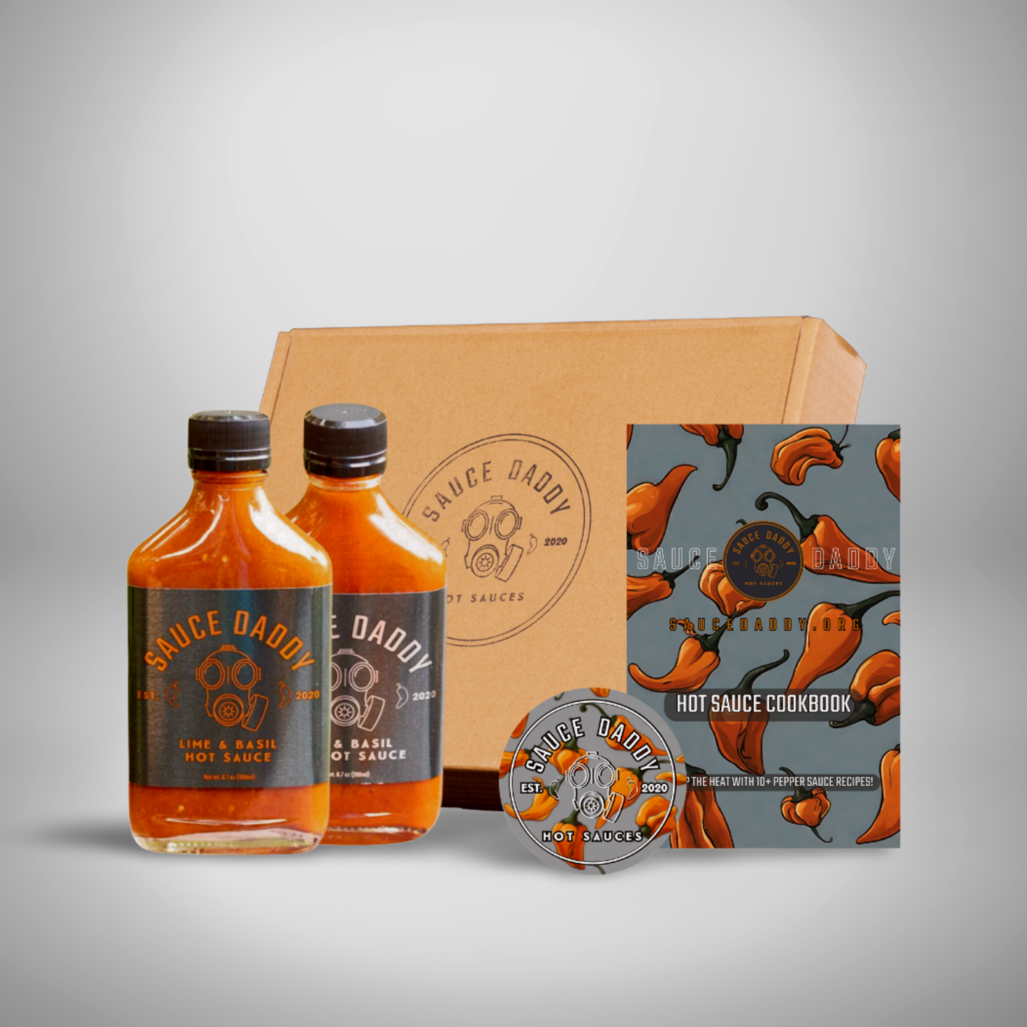 This variety pack includes a mild and hot version of our lime and basil hot sauce, along with a cookbook featuring over 10 recipes and fun stickers. A must-have for any hot sauce enthusiast, this makes for the perfect gift.