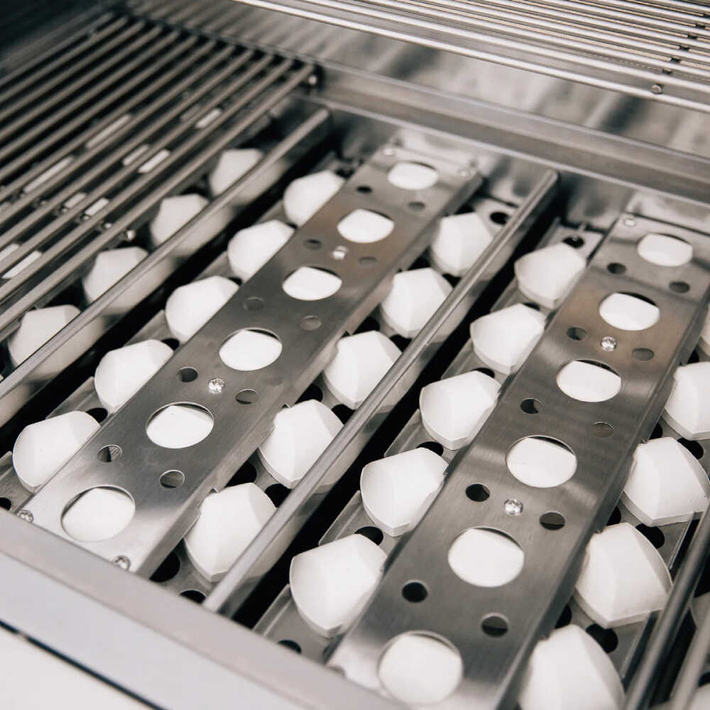 • The Sizzler Pro boasts up to 5 cast stainless steel burners, ensuring powerful and even heat distribution across your grilling surface. Say goodbye to hot and cold spots with the unique captured briquette trays..