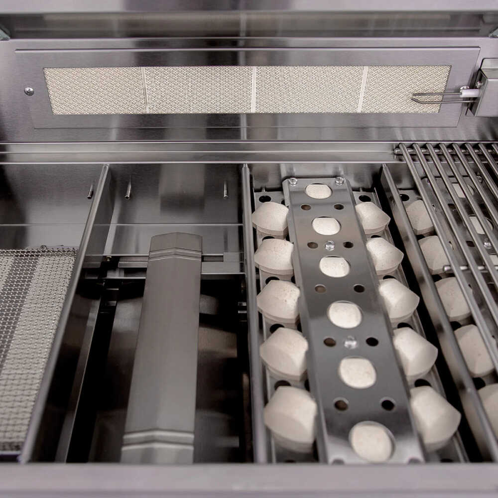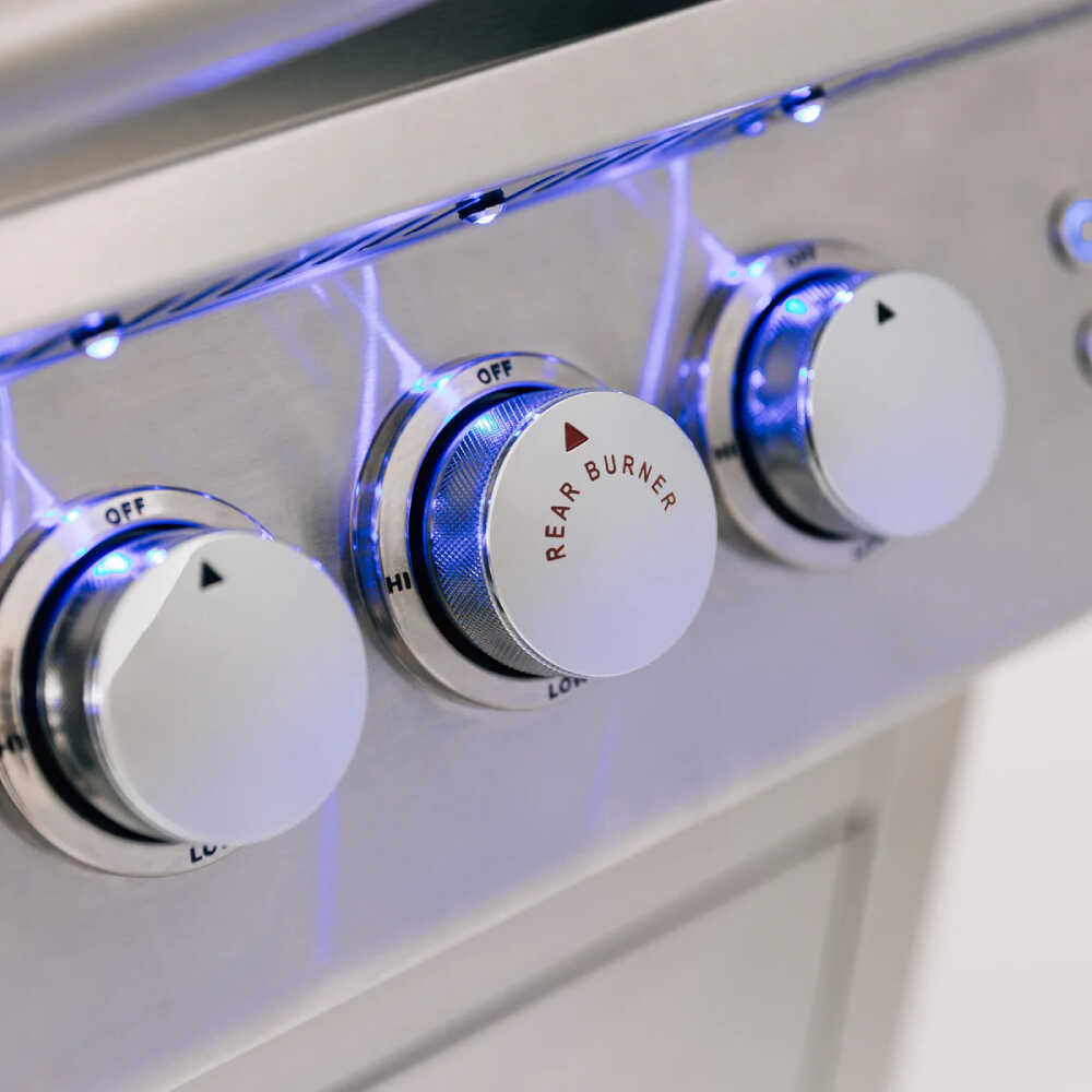 • Built with 443 stainless steel construction, this grill is designed to last and withstand the elements. The sleek exterior LED lights and double-lined hood with interior cooking lights add both functionality and style to your outdoor kitchen.