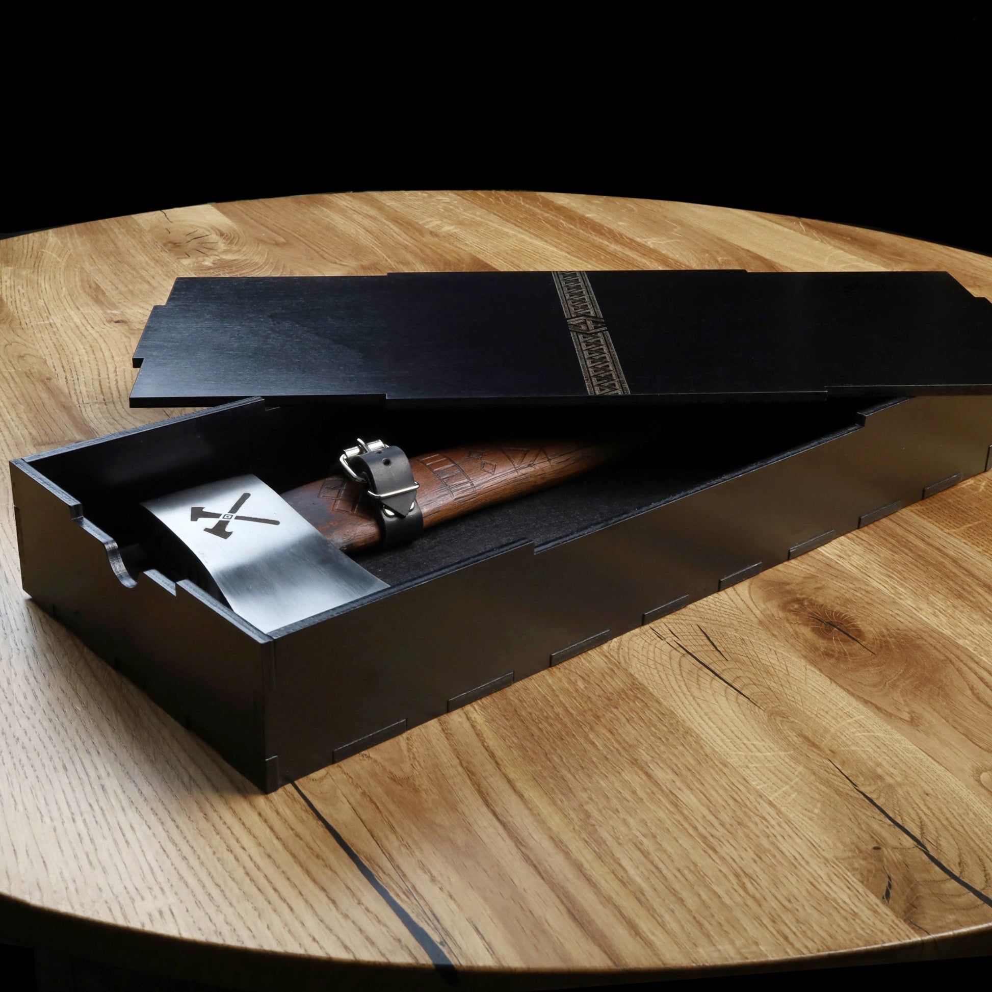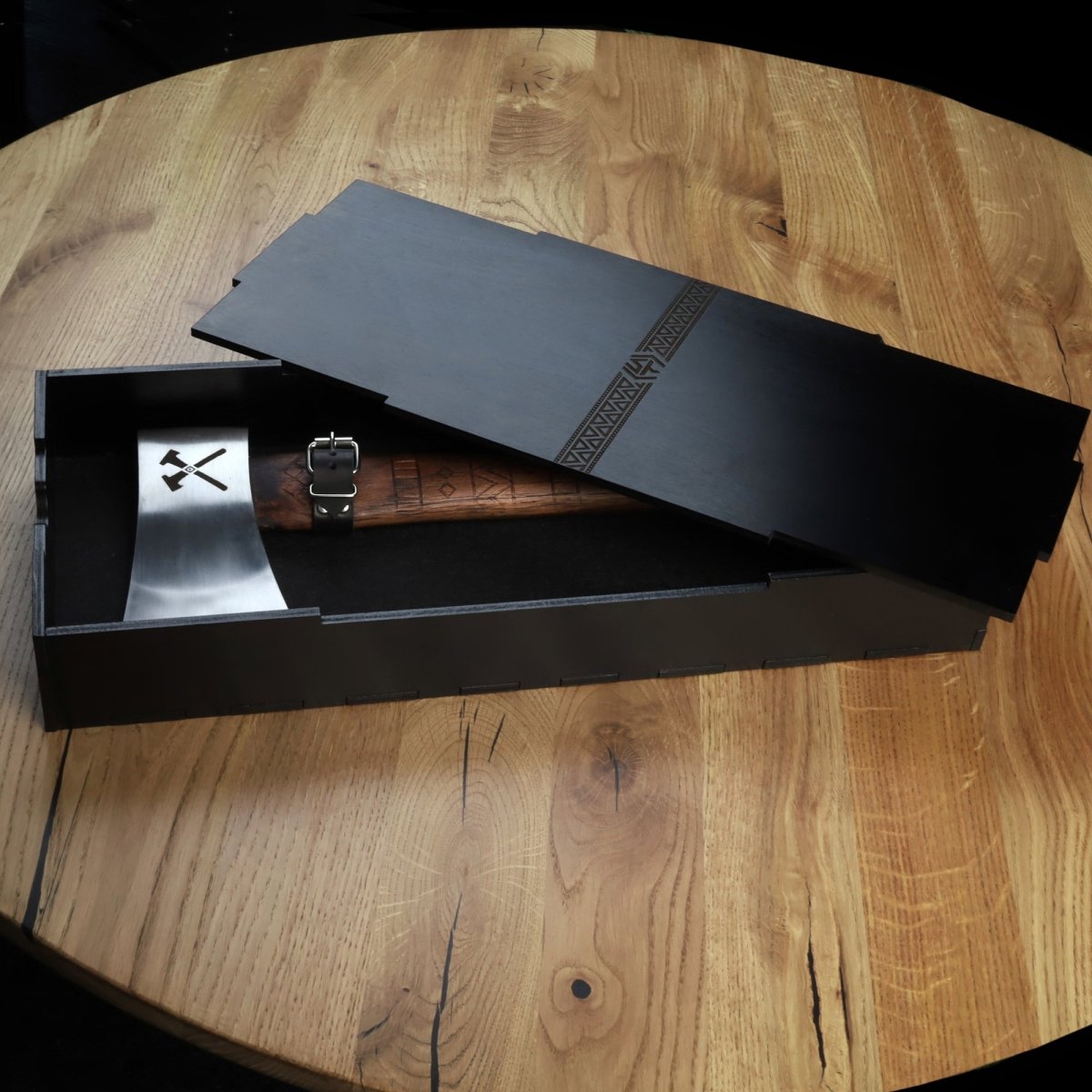 - Secure Grip & Engraved Detailing: the ergonomic handle features intricate Nordic-inspired engravings and is wrapped in a durable rubber grip for superior handling. Its non-slip surface provides enhanced control, making every throw precise and effortless.