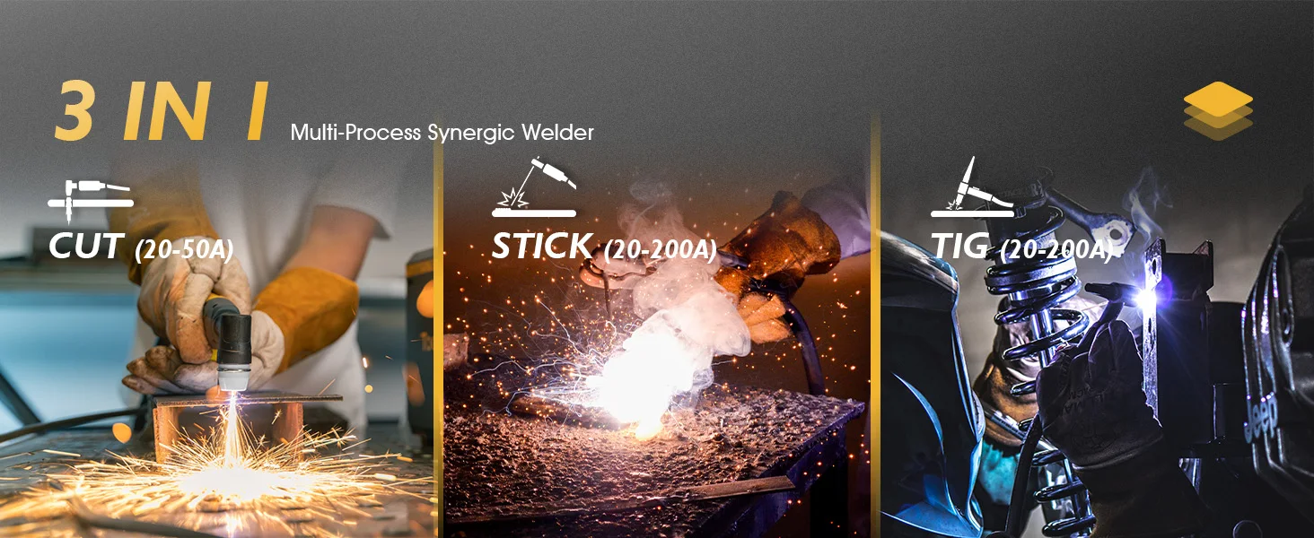 TOOLIOM 3 in 1 Cut/TIG/MMA Welder 50A Air Plasma Cutter 200A TIG and 200A Stick Welder Portable Welding Machine Dual Voltage