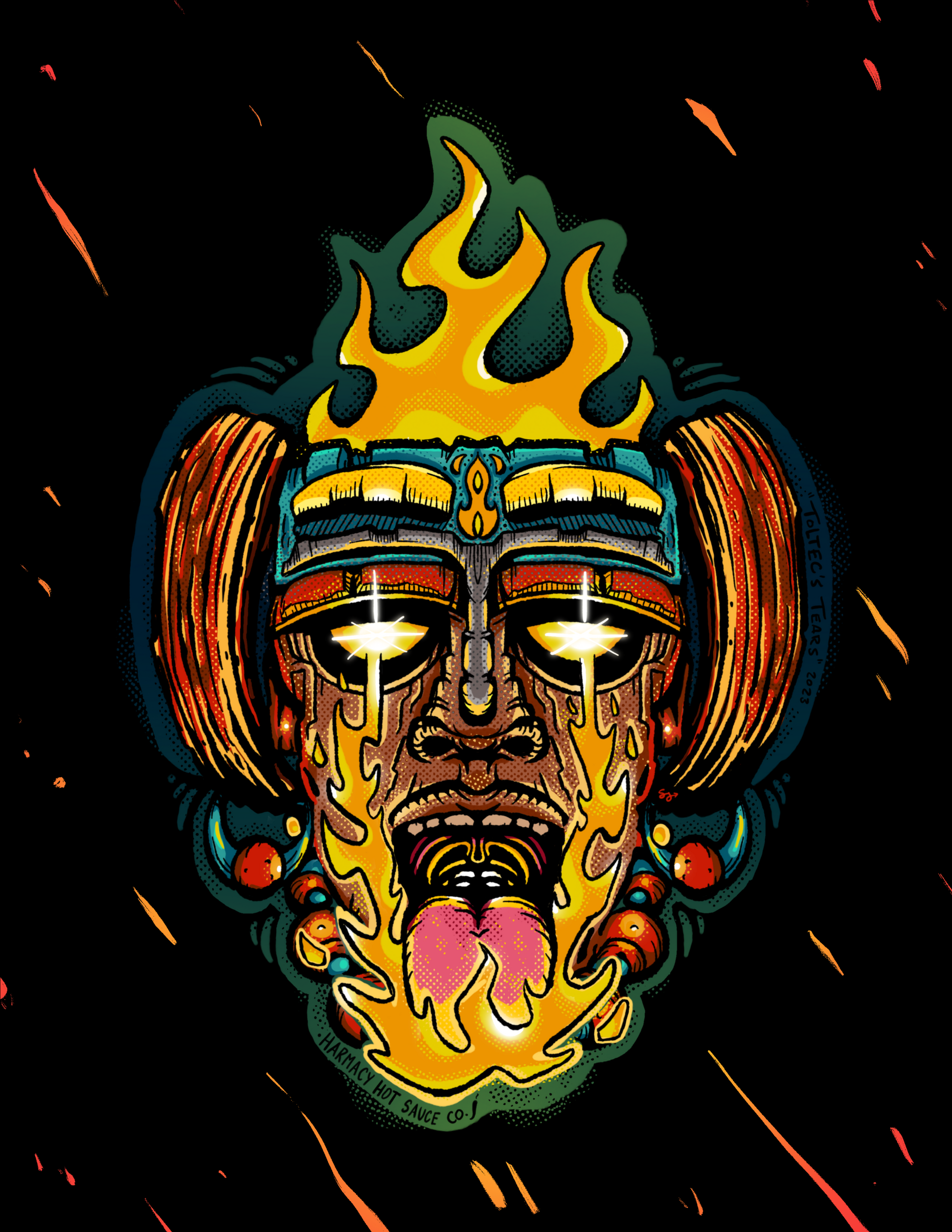 Xipe Totec (shee-pey toh-tek), the Aztec flayed god of life, death, and rebirth, symbolizes the Earth’s renewal of the seasons as life sheds its dead “skin”, and spring vegetation sprouts from seed. This unique, old-world inspired flavor brings together dried chilis, sweet plums, and earthy spices in a mild but richly flavored sauce. Use it to enhance grilled meats and vegetables, roasted and baked potatoes, chili, BBQ dishes, and fried eggs. 1/10 heat.